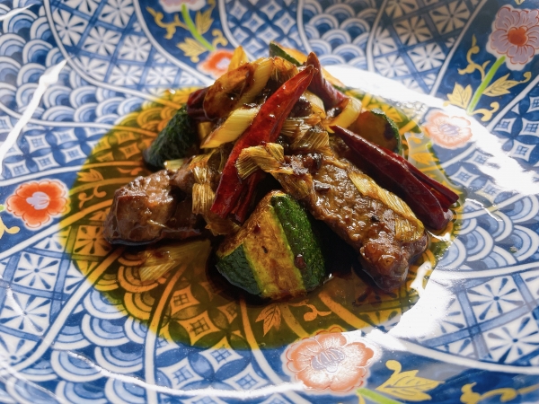 今月メニューより👨🍳鱈 茄子 ズッキーニ カボチャチリソース煮込み🥢鱈のふんわ...